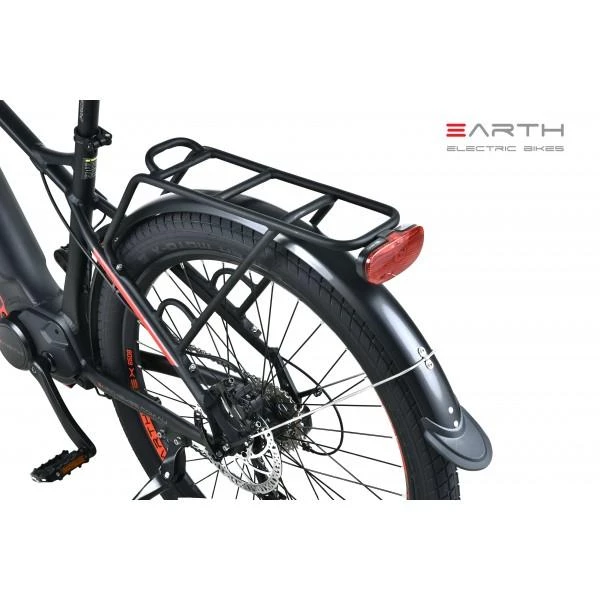 EARTH TREX 650B SP trekking includes quality brand bike component, Schwalbe moto X 2.4-inch tires and tubes, rear rack, front & rear mudguards, 2 x front led lights and rear light, adjustable stem and massive 48V 600WH Panasonic lithium-ion battery power pack, one of the largest battery capacity of any branded e-bikes in Australia.