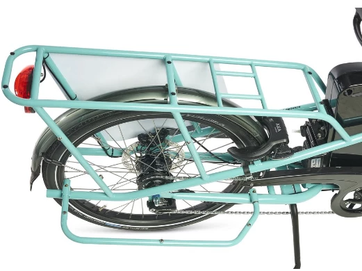 – True complete electric bike, not a conversion. This means the battery comes out using the normal flip seat method, doesn’t interfere with cargo space. AXA wheel lock fits the frame, lights come integrated with L1000 option, both tyres Marathon Plus, all standard eZee parts used with unbeatable warranty and support.