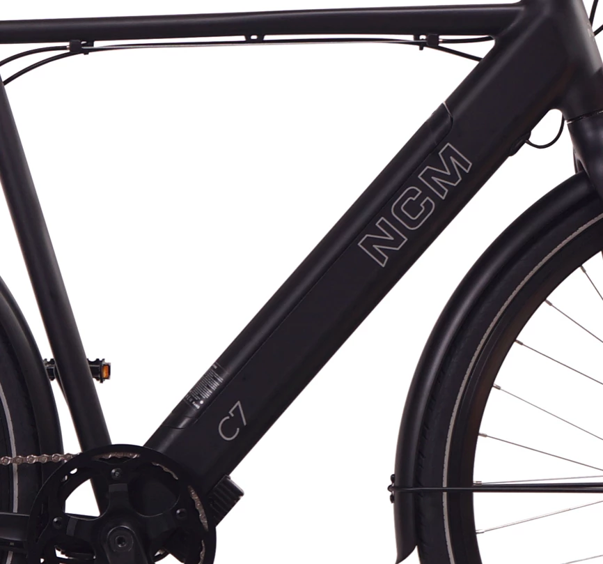 Minimal Design, Maximal Performance. The NCM C7 is fully equipped E-bike for city commutes. Whether you are trying to get to work on time, while being sweat free, or need to rush to your favourite place in style, the all new NCM C7 lets you cover your daily journeys with ease. This E-bike is designed with a tough aluminium frame, and a strong rigid handlebar and saddle for improved ergonomics and performance. The high top tube, makes the bike sturdy and strong allowing the power you put down to be effectively transferred to the road.