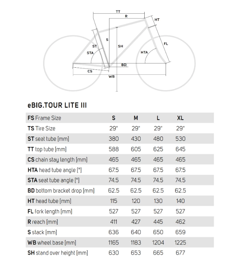 | 01. FRAME | eBIG.TOUR LITE III; MAT aluminium; 29×2.35″ without fender max./ 29″x2.25″ with fender max. WHS; 148×12 AST; intube |