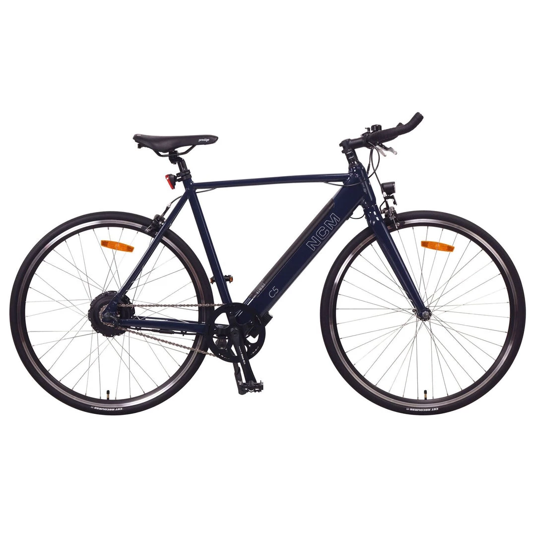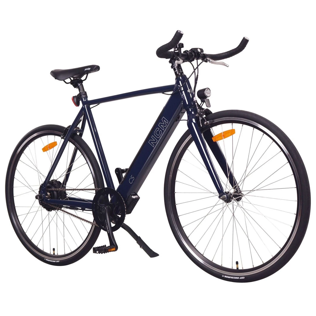 Minimal Design, Maximal Performance. The NCM C5 is fully equipped E-bike for city commutes. Whether you are trying to get to work on time, while being sweat free, or need to rush to your favourite place in style, the all new NCM C5 lets you cover your daily journeys with ease. This E-bike is designed with a tough aluminium frame, and a strong rigid handlebar and saddle for improved ergonomics and performance. The high top tube, makes the bike sturdy and strong allowing the power you put down to be effectively transferred to the road.