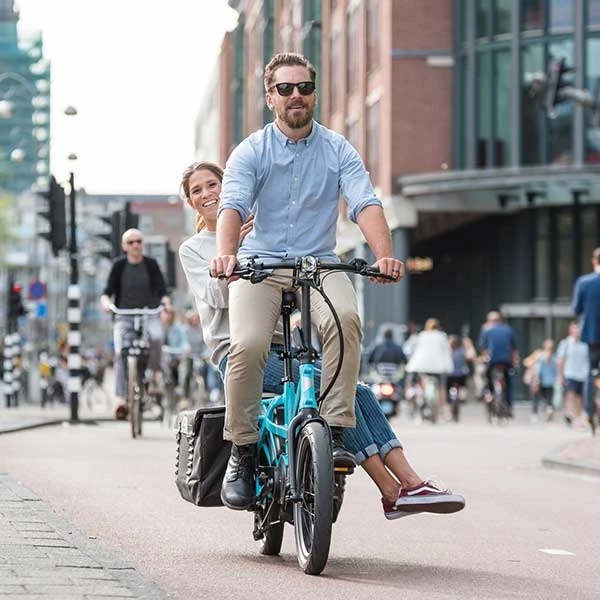 The GSD is an awesome touring machine. It’s got room for six Ortlieb bags (4 on the rear rack and 2 on the front), and a range of up to 250km. A bit of careful packing lets you bring a full touring load, together with a little passenger. That means two GSDs let a family of four tour the world, no bike trailer required.
